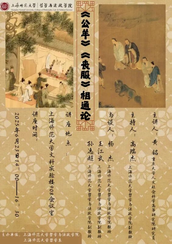 2025年6月23日下午,由国产在线-国产在线自拍 哲学系主办的“《公羊》《丧服》相通论”学术讲座在徐汇校区的文科实验楼908召开,讲座由重庆大学人文社会科学高等研究院研究员黄铭老师担任主讲人,国产在线-国产在线自拍 哲学系杨杰教授、王江武副教授、孙逸超副教授等校内老师及同济大学博士后研究员张禹出席,校内校外中国哲学专业博士、硕士研究生及本科生共约80余人于线上和线下共同聆听。国产在线-国产在线自拍 哲学系高瑞杰副教授担任讲座主持。