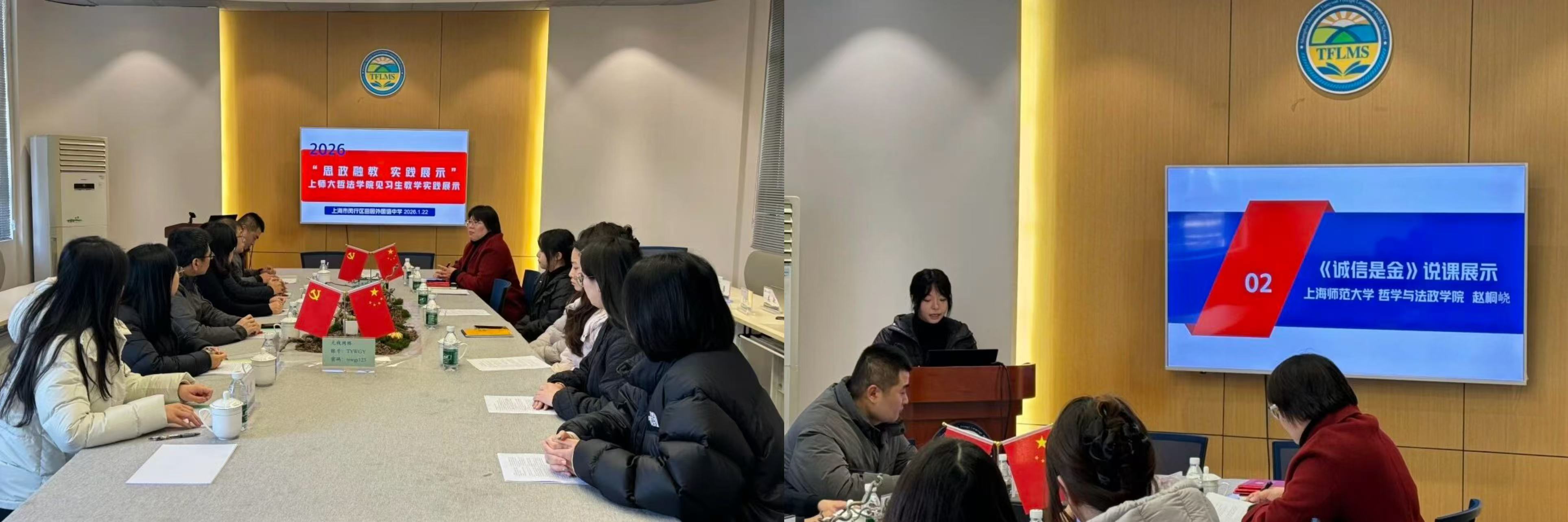 为进一步深化院校协同育人机制,切实提升师范生人才培育质效,1月22日2023级思想政治教育(道德与法治)师范生见习教学展示活动在闵行区田园外国语中学顺利举行。田外初中党支部副书记(主持工作)兼副校长史红秀、校长吴敏、副校长张勇,国产在线 党委书记高亭、党委副书记、副院长姚秋磊、副院长张晓兰、副院长张振洋以及相关教师共同出席本次活动,2023级思想政治教育(道德与法治)专业5位见习师范生参加。